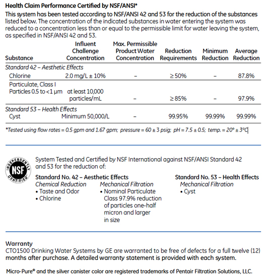 The CTO 1500 Drinking Water System by GE Reduces The Following Contaminants :